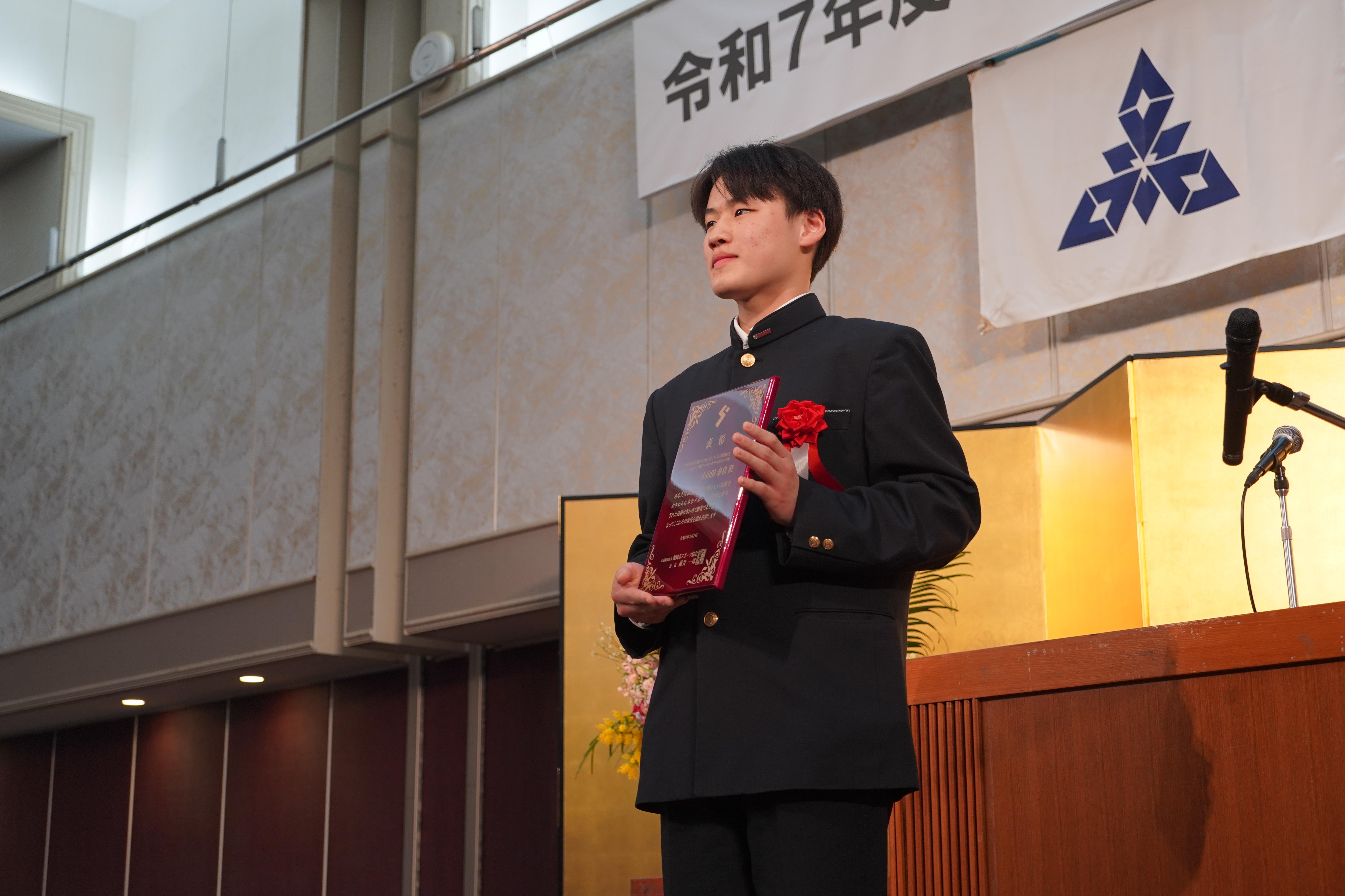 令和8年3月7日(土)、福岡リーセントホテルにおいて令和7年度公益財団法人福岡市スポーツ協会の表彰式を開催し、原田副会長より表彰楯または感謝状を贈呈いたしました。