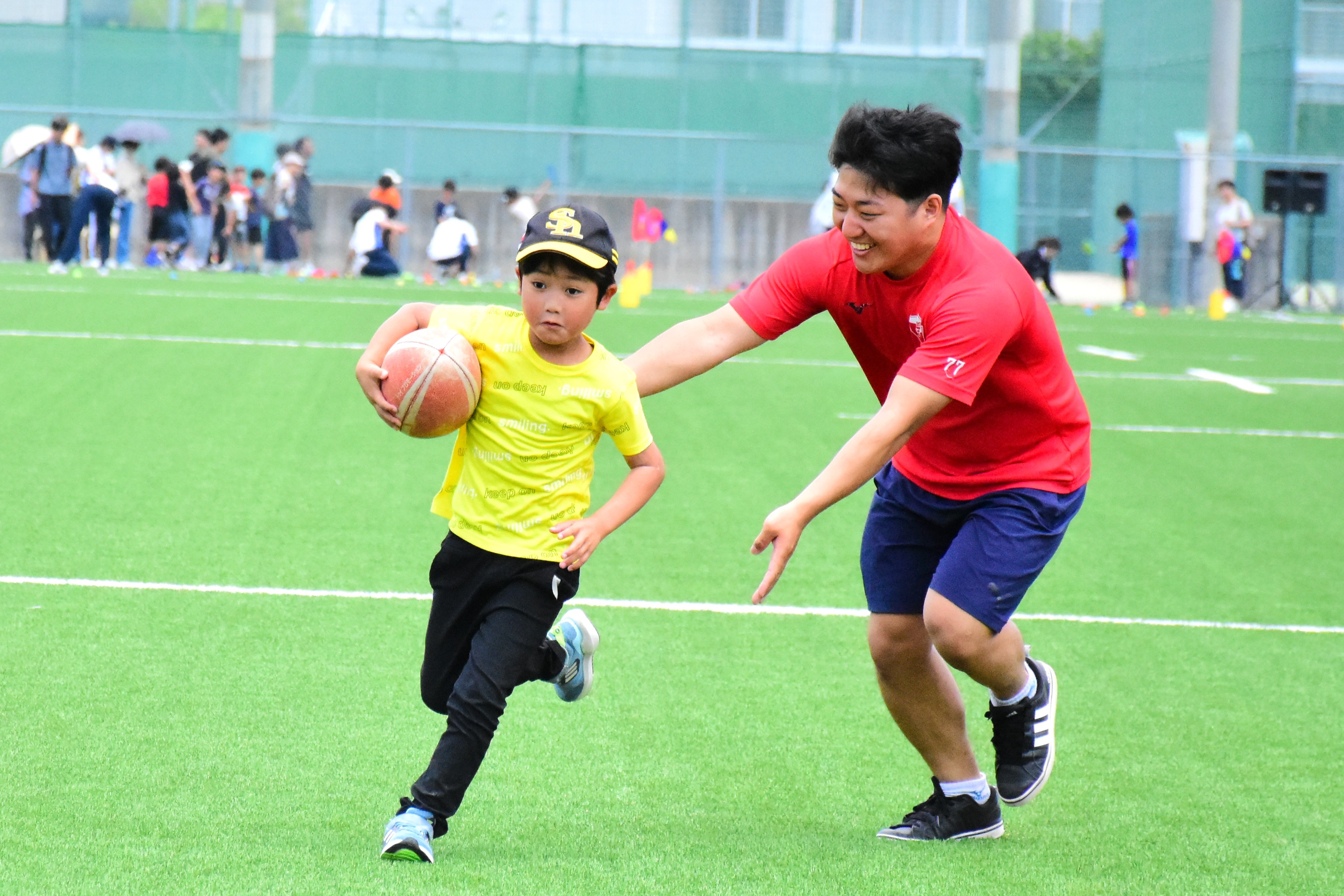 ボールの投げ方や捕り方などラグビーの基礎を体験できる教室です!